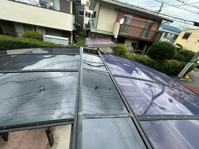 - 波板の寿命がきているため、全面的な張り替えが必要です。この際、留め具は錆びにくく耐久性の高いポリカーボネート製にすべて交換します。