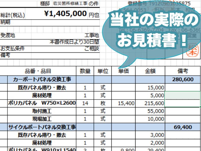 保険金が下りた場合でも、修理費用は適正価格であるべきです。このセクションでは、火災保険を適用した実際の事例と、具体的な費用内訳をご紹介します。