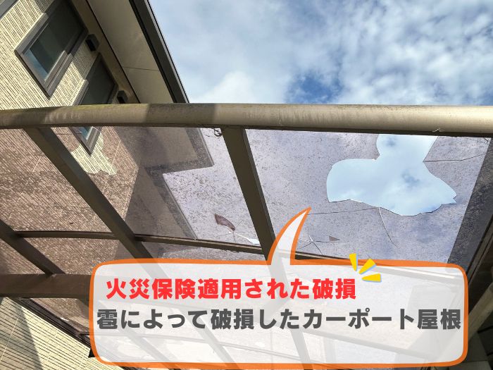 「雹により、カーポートやサイクルポートのパネルに多数の穴が開き、雨樋も破損してしまった。火災保険を使って修理できないか相談したい」