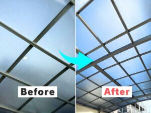 📌 光がしっかり入り、明るい物干し場が復活!錆びにくく割れにくい素材なので、今後長く安心です。